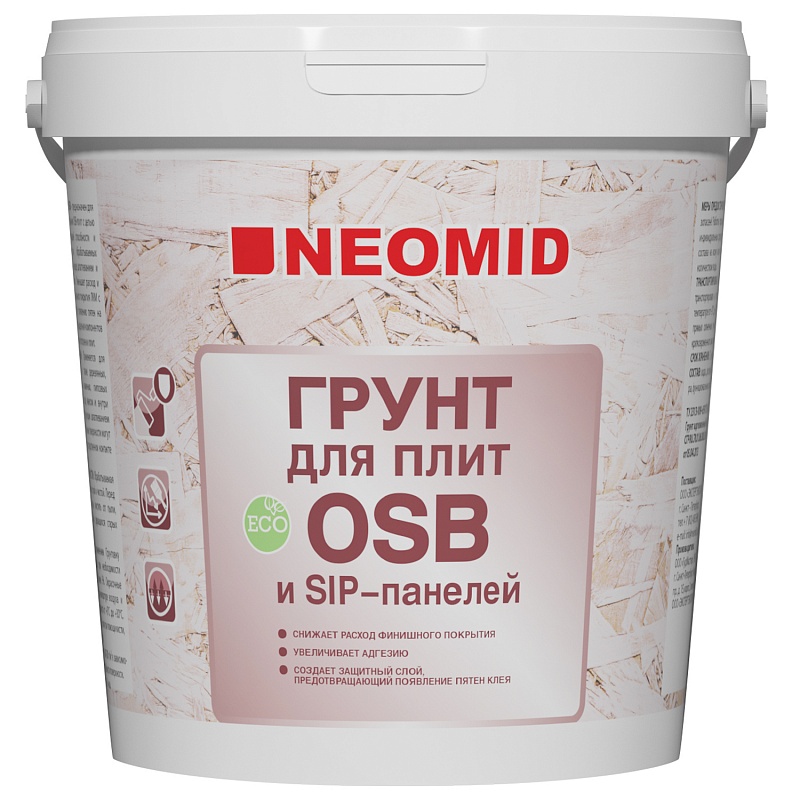 Хорошая вещь. Мне хватило обработать около 50 квадратов такой банкой Грунт Neomid отлично ложится на ОСБ, красит белым цветом, к тому же создаёт защитный слой против грибка и плесени.