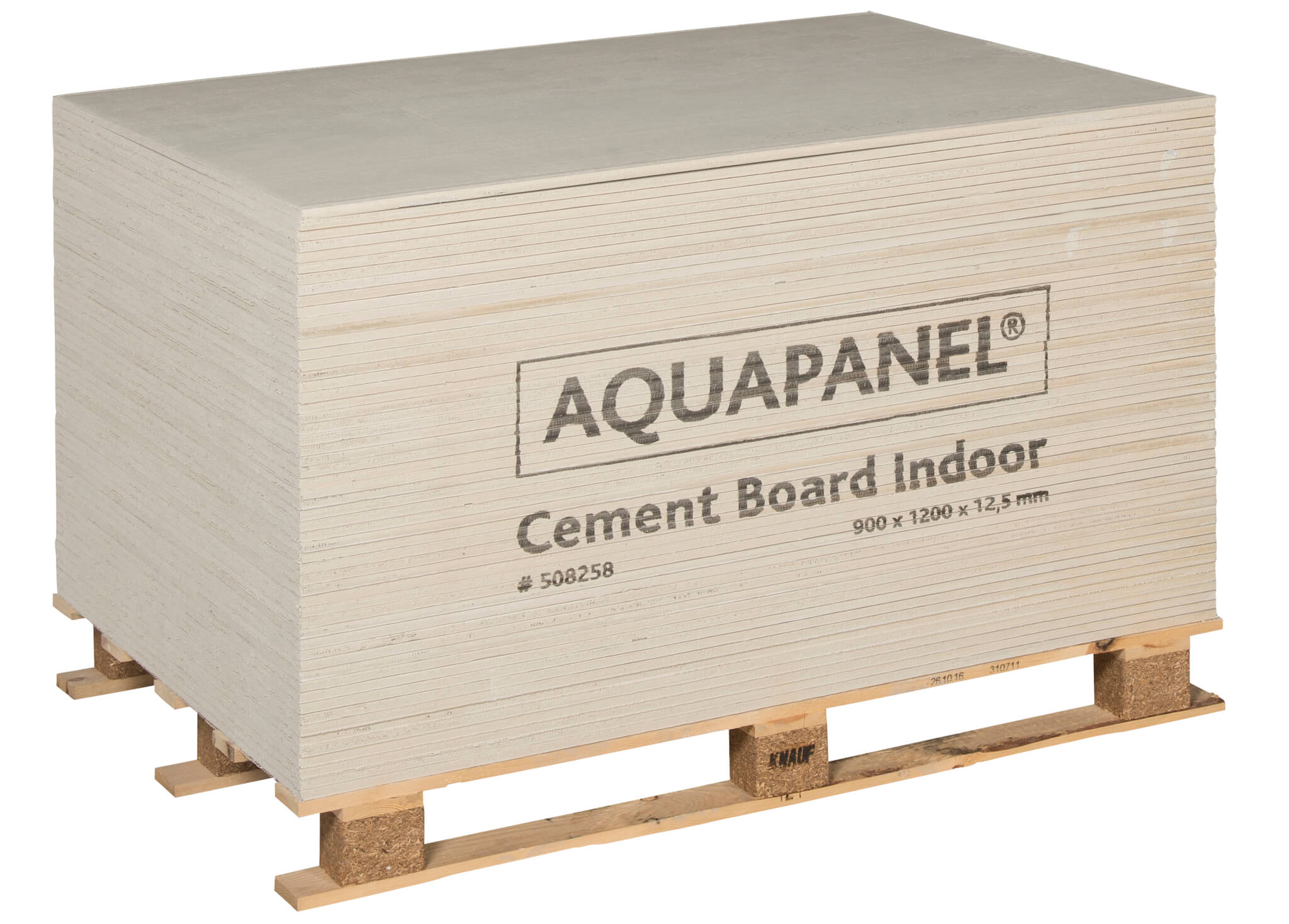 Аквапанель КНАУФ внутренняя - это цементная плита, состоящая из сердечника на основе мелкозернистого легкого бетона, все плоскости которого (лицевая, тыльная сторона, продольные кромки) кроме торцов армированы стеклосеткой. Специальная форма продольной кромки усилена стеклянными волокнами. Аквапанель внутренняя имеет толщину 12,5мм.