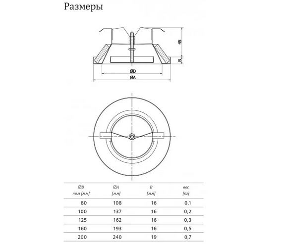 Объем воздуха регулируется благодаря вращению центральной части клапана анемостата. Диффузор оборудован монтажным фланцем и стопорным кольцом для фиксации гибких воздуховодов на фланце, а также для удобства монтажа в подвесные потолки и стены.