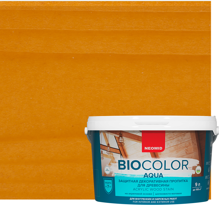 Декоративный антисептик Neomid Bio Color Aqua – деревозащитный декоративный состав на акриловой основе для высокоэффективной защиты и декоративной отделки деревянных поверхностей.