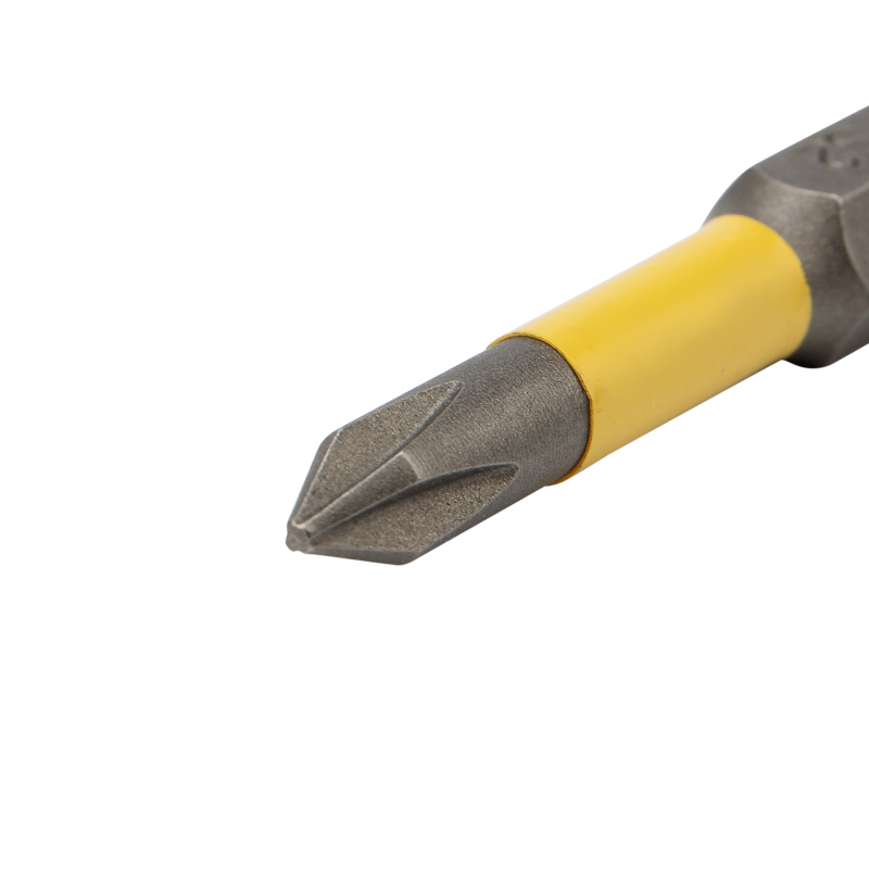 Изготовлена из легированной высокопрочной стали S2, что дает повышенную устойчивость к изломам и деформации в наиболее нагружаемых точках касания. Размер наконечника PH1 подходит для работы со шлицами с резьбовым диаметром 2,1-3 мм. Намагниченный наконечник облегчает крепление и фиксацию крепежа на бите. Шестигранный хвостовик надежно фиксирует биту в патроне инструмента и не дает ей проворачиваться.
