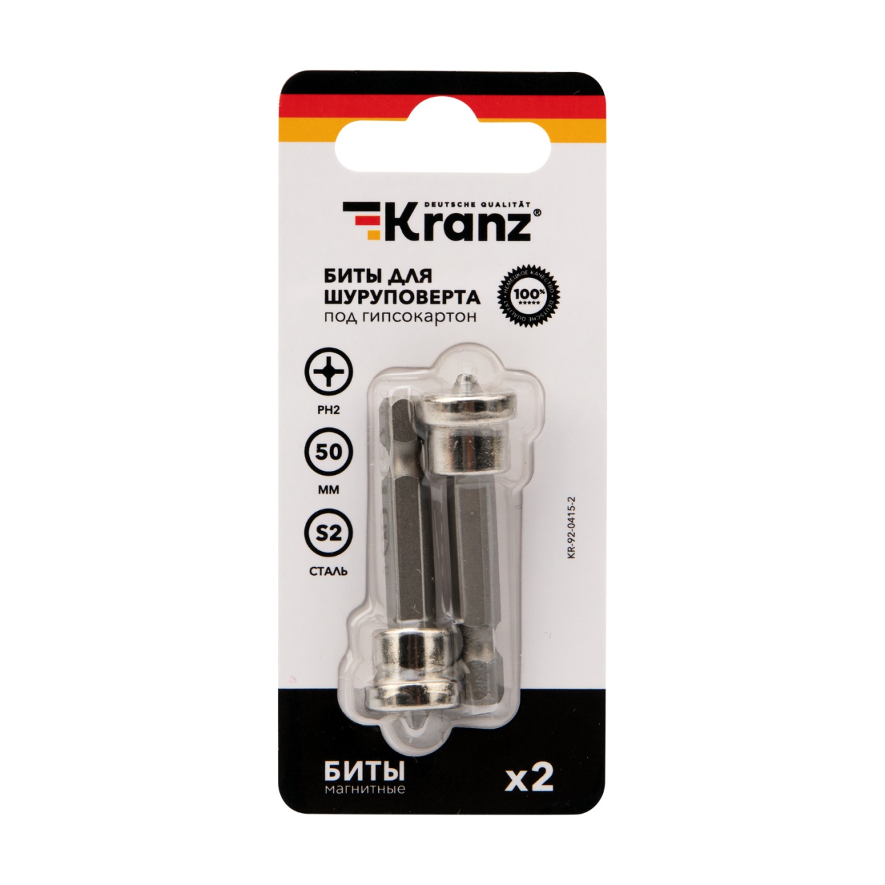 Бита крестообразная Kranz PH2 х 50мм с ограничителем (2шт/уп)