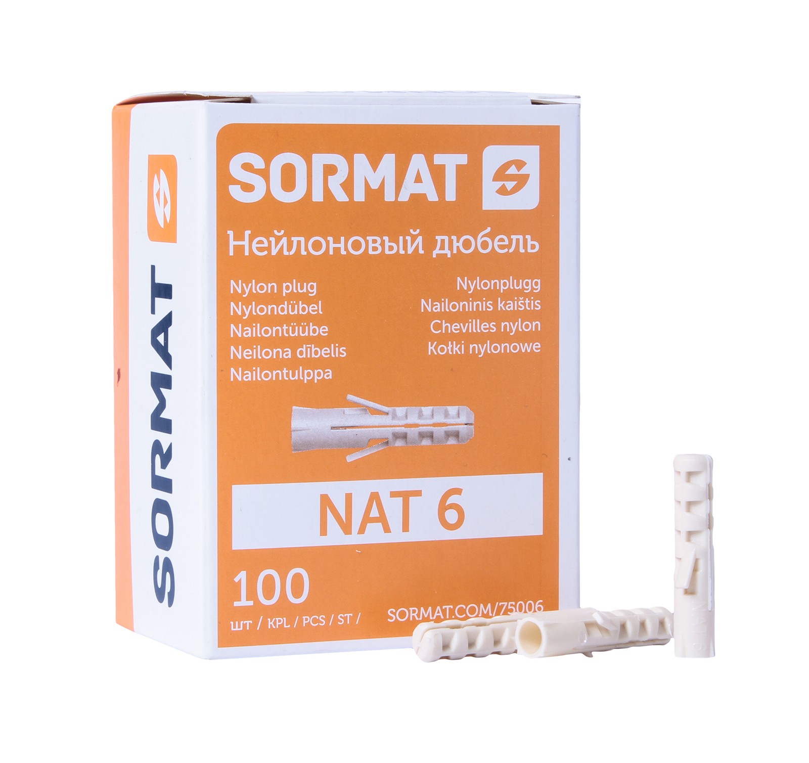 Дюбель Sormat NAT 6 - Предназначен для легких креплений (небольшие нагрузки) в бетон и полнотелый кирпич.