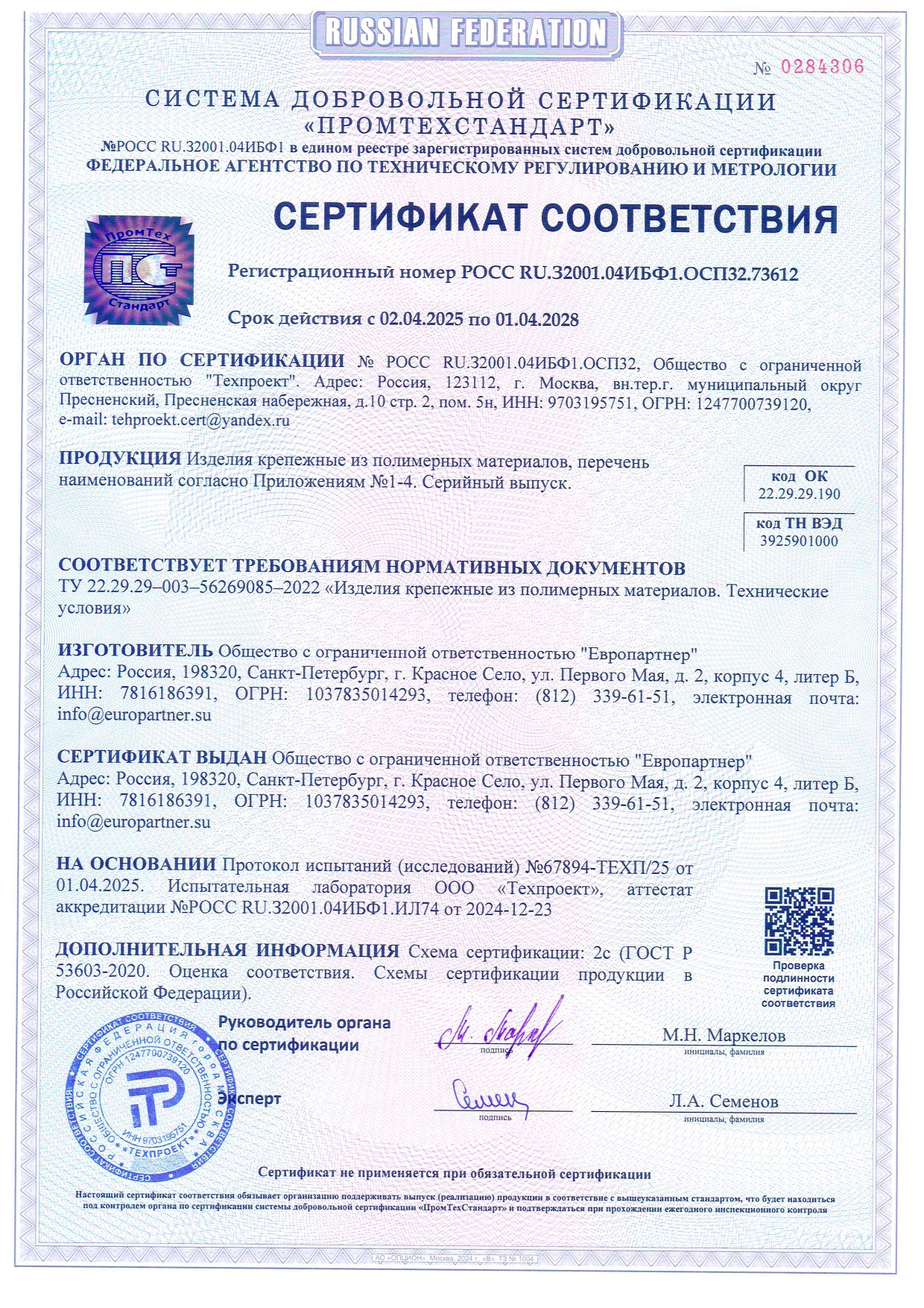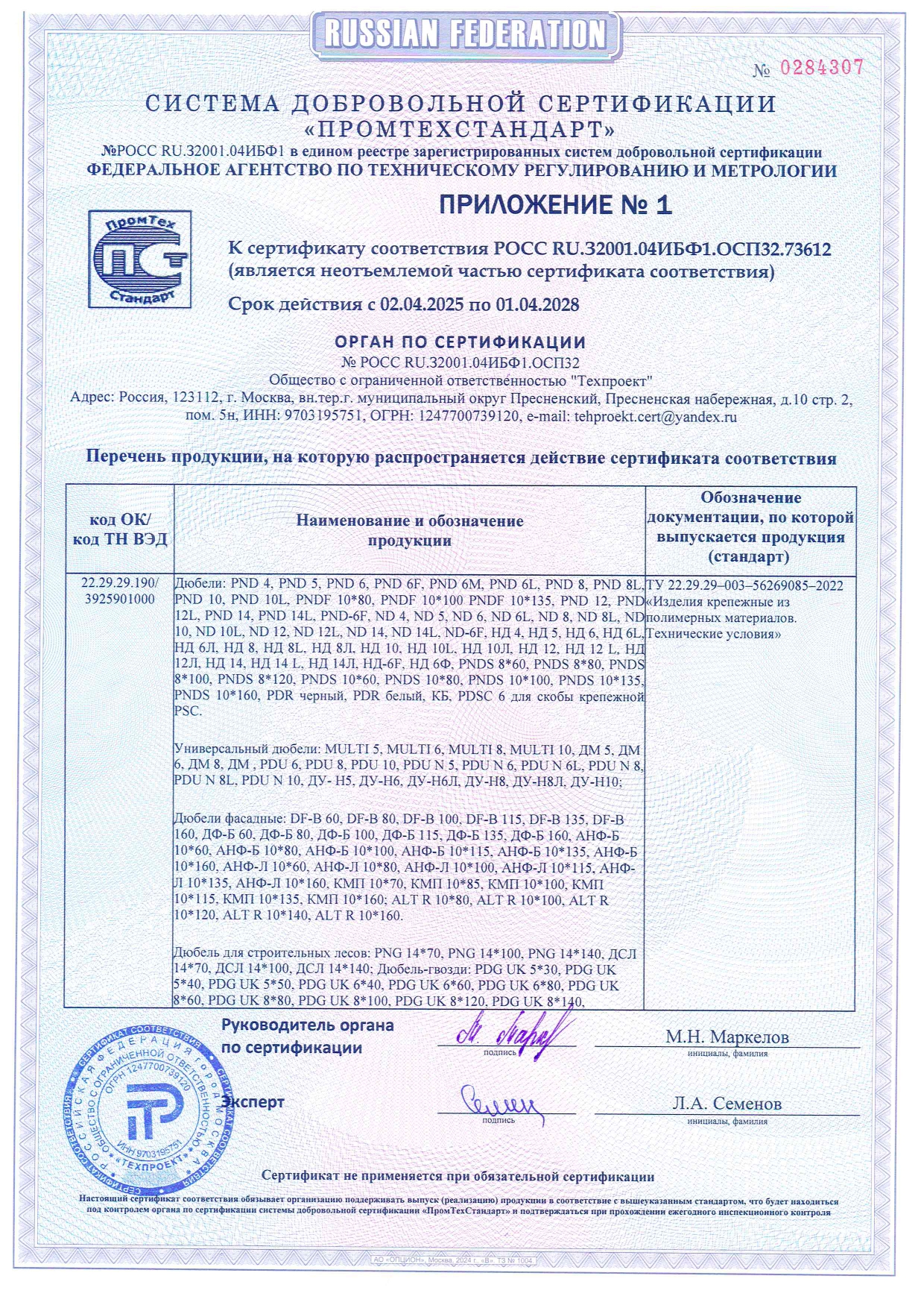 Имеет уникальную распорную зону, благодаря которой в качестве распорного элемента можно применять: шурупы, винты с метрической резьбой, гвозди с широким диапазоном типоразмеров.