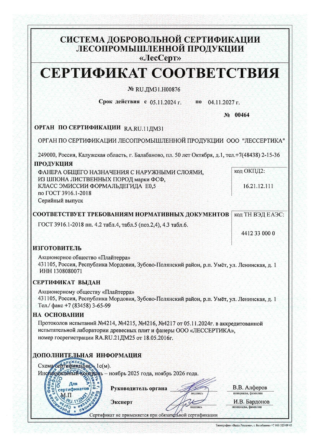 | Класс эмиссии: | Е0,5 |