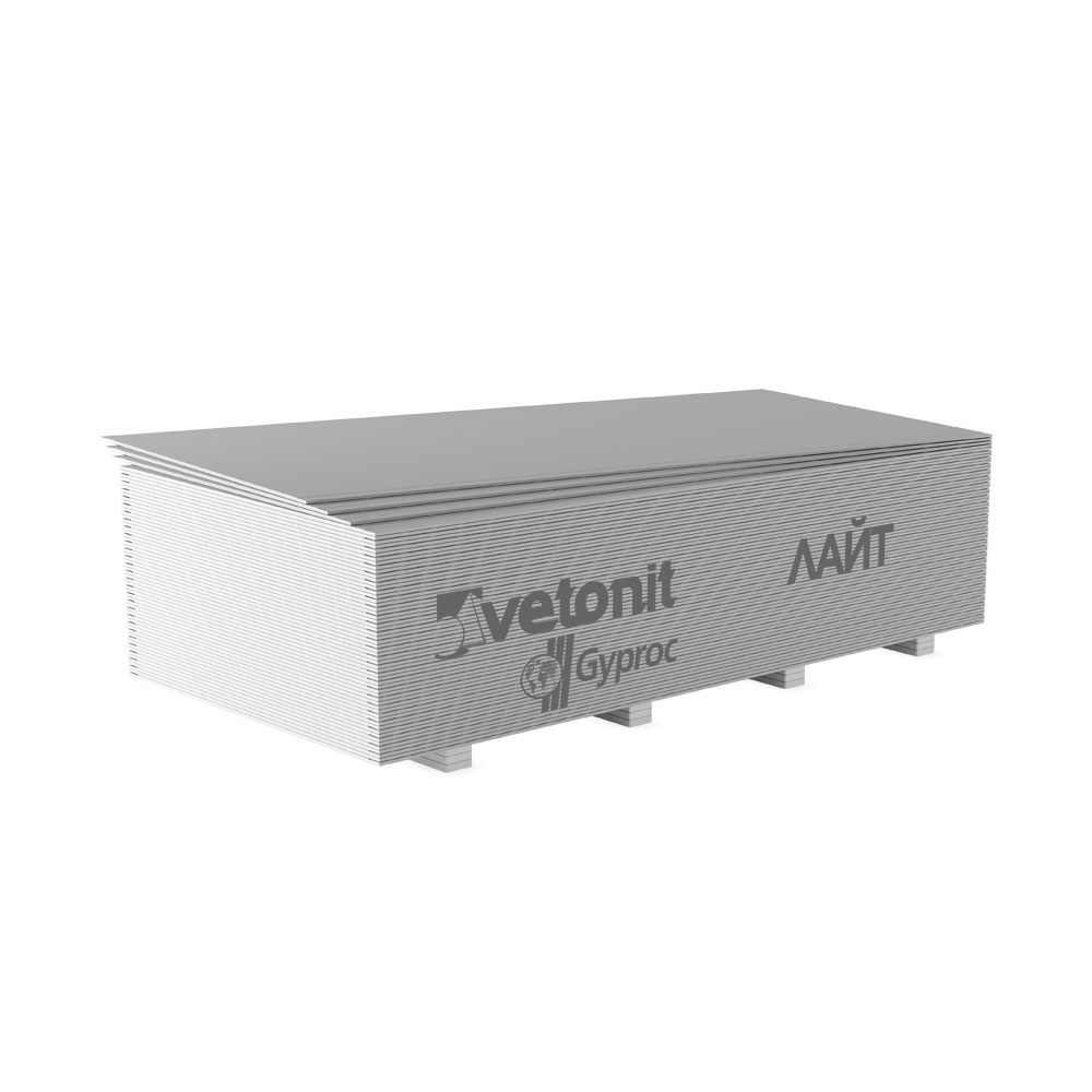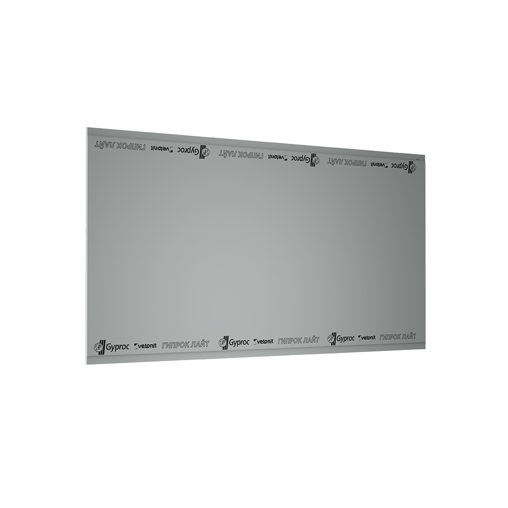 Гипсокартон Ветонит (Гипрок) Лайт (ГСП) - облегчённая гипсовая строительная плита (ГСП), предназначенная для монтажа потолков в помещениях с нормальной влажностью, а также для реализации любых дизайнерских решений. Лёгкий вес листа упрощает монтаж, а безупречно гладкая поверхность и светлый цвет картона позволяет получить ровный потолок при минимальном расходе шпатлёвочной смеси.