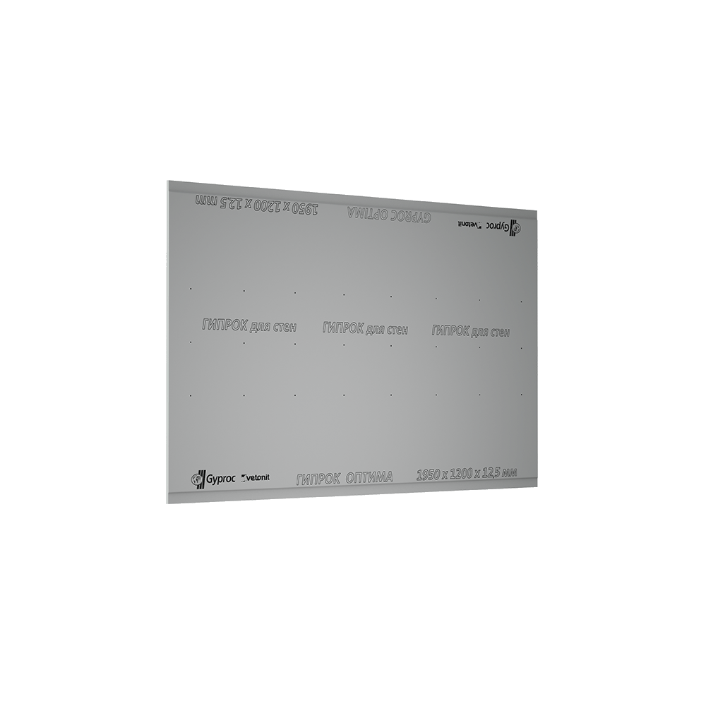Гипсокартон Ветонит (Гипрок) Оптима - универсальная гипсовая строительная плита (ГСП), которая подходит для монтажа перегородок и потолков, а также облицовки стен в помещениях с сухим и нормальным влажностным режимом.
