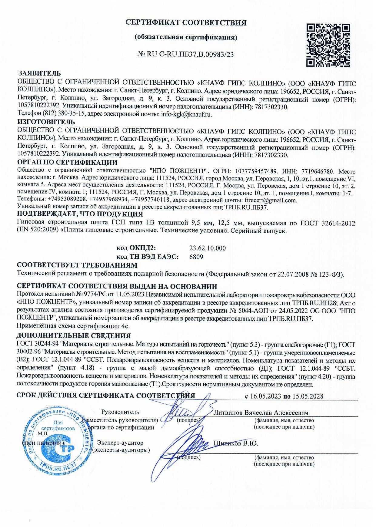 На каждом КНАУФ-листе влагостойком (ГСП-Н3) присутствует условное обозначение, которое состоит из: