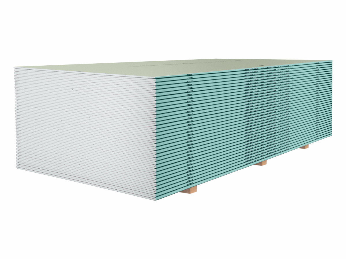 Гипсокартон влагостойкий КНАУФ (ГСП-Н3) - предназначен для устройства легких межкомнатных перегородок, подвесных потолков, облицовки стен , а также в зданиях и помещениях с влажным и мокрым влажностными режимами с обеспечением вытяжной вентиляцией и при условии защиты лицевой поверхности, например: гидроизоляцией, водостойкими грунтовками, красками, керамической плиткой и т.п.