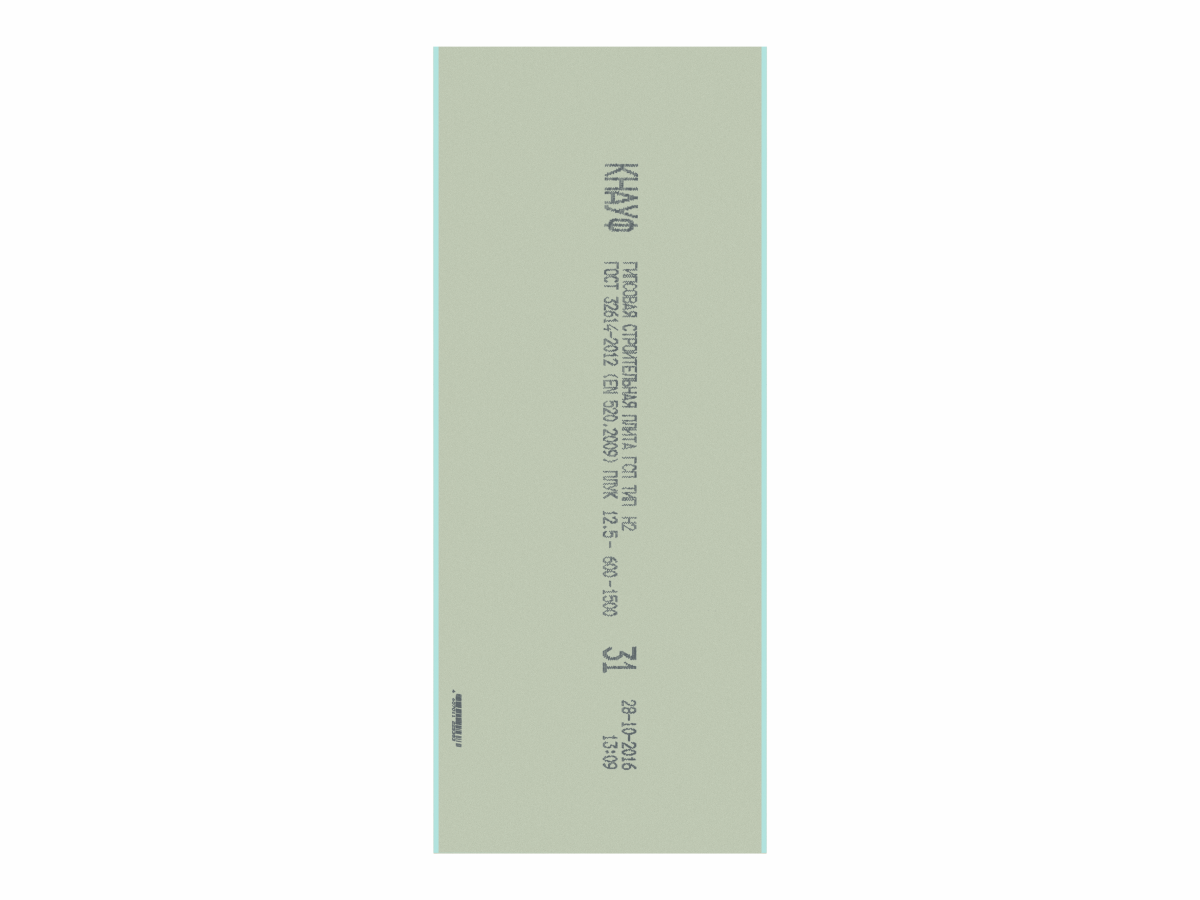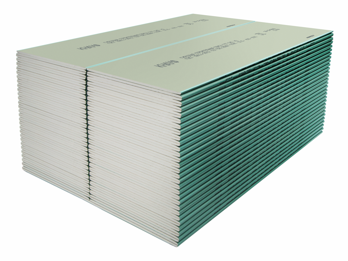Гипсокартон влагостойкий КНАУФ малоформатный с кромкой ПЛУК - гипсокартонный КНАУФ-лист (ГКЛ) представляет собой прямоугольный элемент, который состоит из двух слоев специального картона с прослойкой из гипсового теста с армирующими добавками, при этом боковые кромки полосы зафальцовываются краями картона (лицевого слоя). Для формирования сердечника применяется гипсовое вяжущее марки Г4 по ГОСТ 125-79.