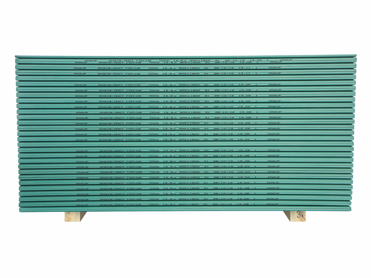 Гипсокартон влагостойкий КНАУФ малоформатный 1500 х 600 х 12,5мм кромка ПЛУК