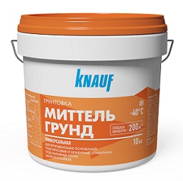 Грунтовка КНАУФ-Миттельгрунд используется для внутренних и наружных работ, применяется: