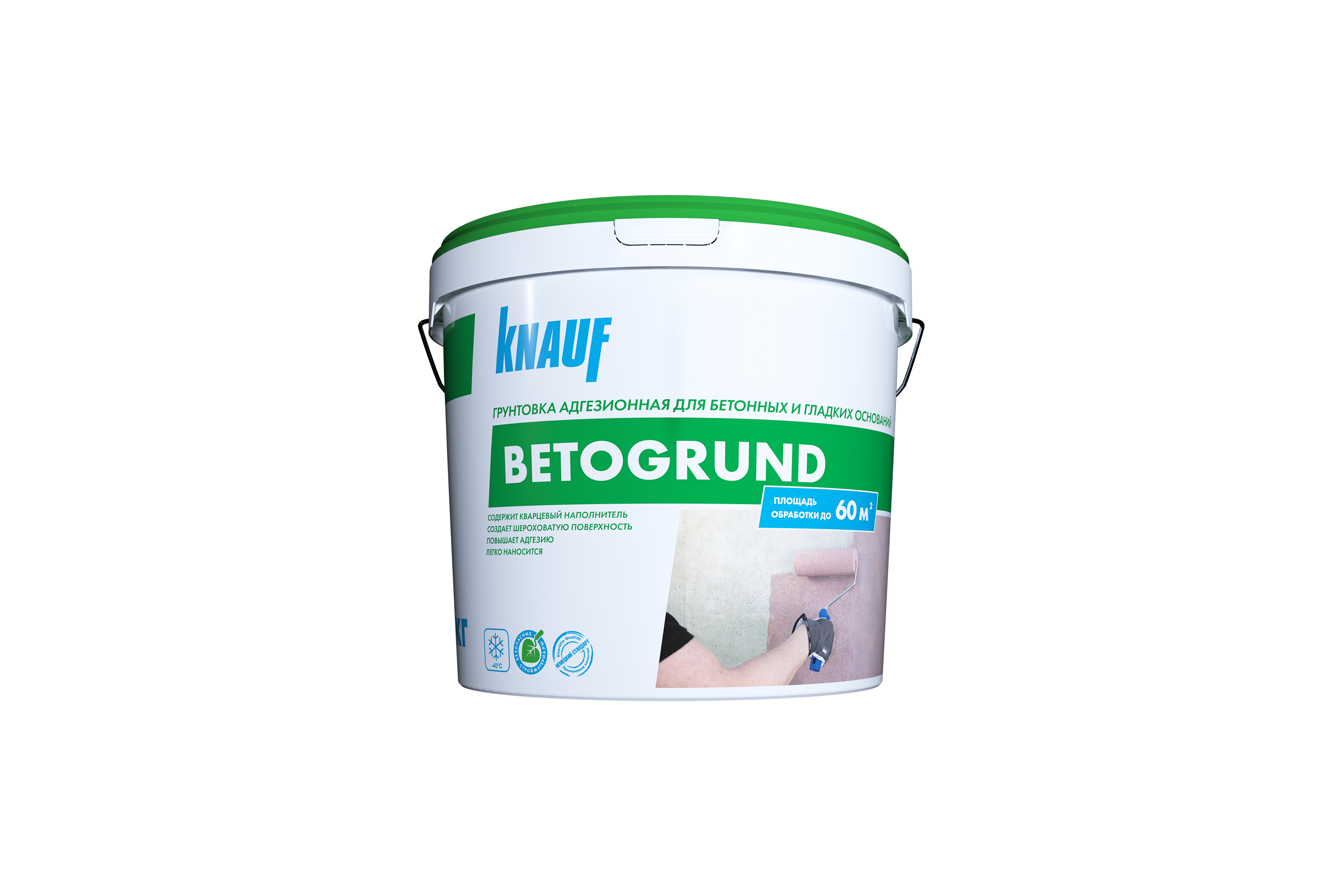 Грунтовка КНАУФ Бетогрунд F предназначена для создания шероховатой поверхности на бетоне, цементных штукатурках, пенополистирольных и пазогребневых плитах перед нанесением гипсовых штукатурок, шпаклевок и монтажных клеев.