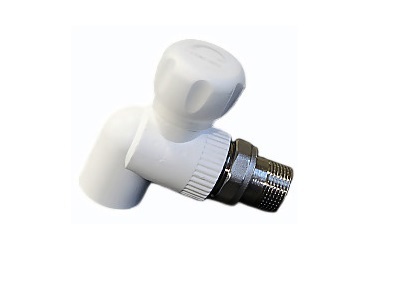 Кран шаровый полипропиленовый угловой 25мм х НР 3/4 со сгоном (американка) RTP