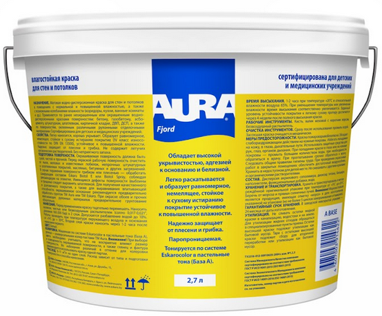 Краска влагостойкая Aura Interior Fjord база А белая 2,7л