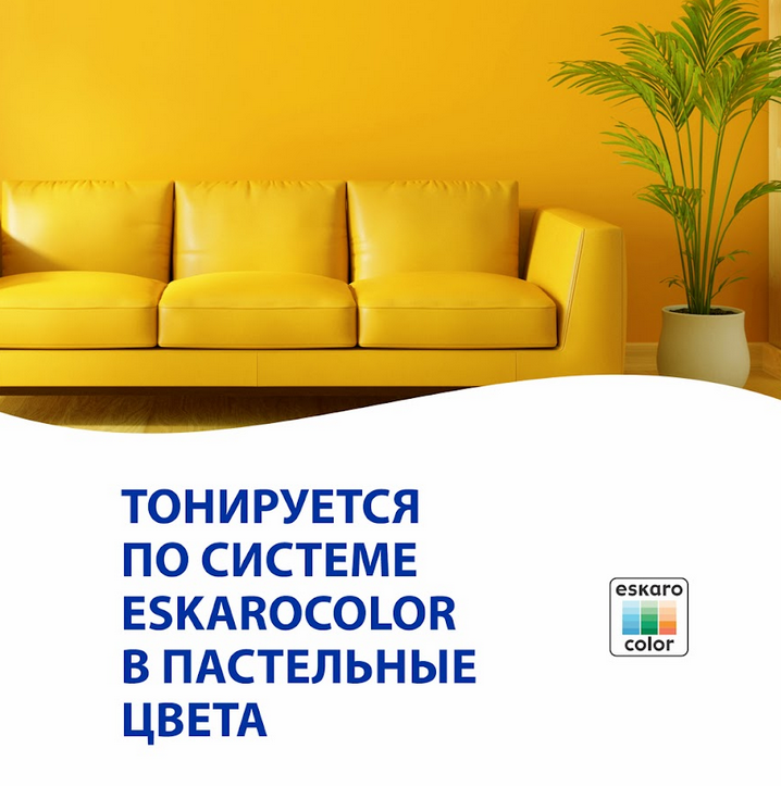 Матовая влагостойкая краска для стен и потолков внутри помещений с нормальной и повышенной влажностью, а также с возможными колебаниями влажности. Применяется по ранее неокрашенным или окрашенным водно- дисперсионными красками поверхностям: бетону, газобетону, асбоцементу, штукатуркам, шпатлевкам, кирпичной кладке, ДВП, ДСП, а также по поверхностям, оклеенным различными рулонными отделочными материалами. Сертифицирована для детских и медицинских учреждений. Белый – можно использовать без колеровки