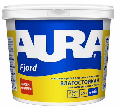 Краска влагостойкая Aura Interior Fjord база А белая 0,9л