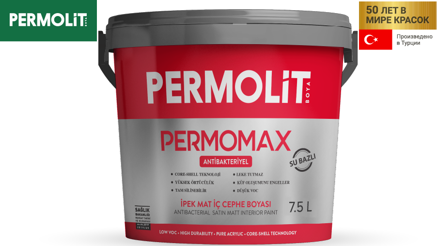 Краска антибактериальная экстрастойкая Permomax шелковисто-матовая база TR бесцветная 7,5л
