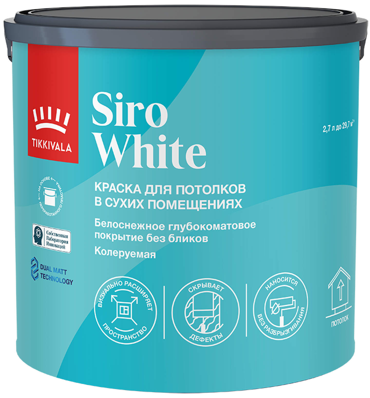 Краска для потолка Tikkivala / Tikkurila Siro White 2,7л