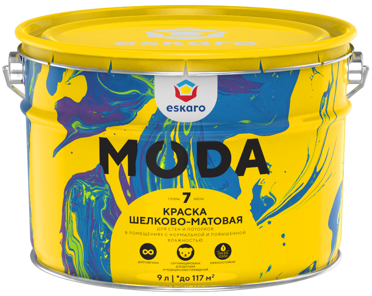 Краска моющаяся Eskaro Moda 7 шелково- матовая база А белая 9л