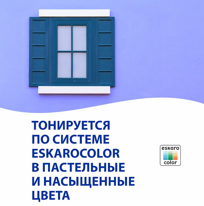 Шикарная краска реально держится через год фасад как новый, не облезла и не потрескалась. Белая база хорошо колеруется, у меня получился нежный голубой. Легко наносится валиком, почти без запаха.