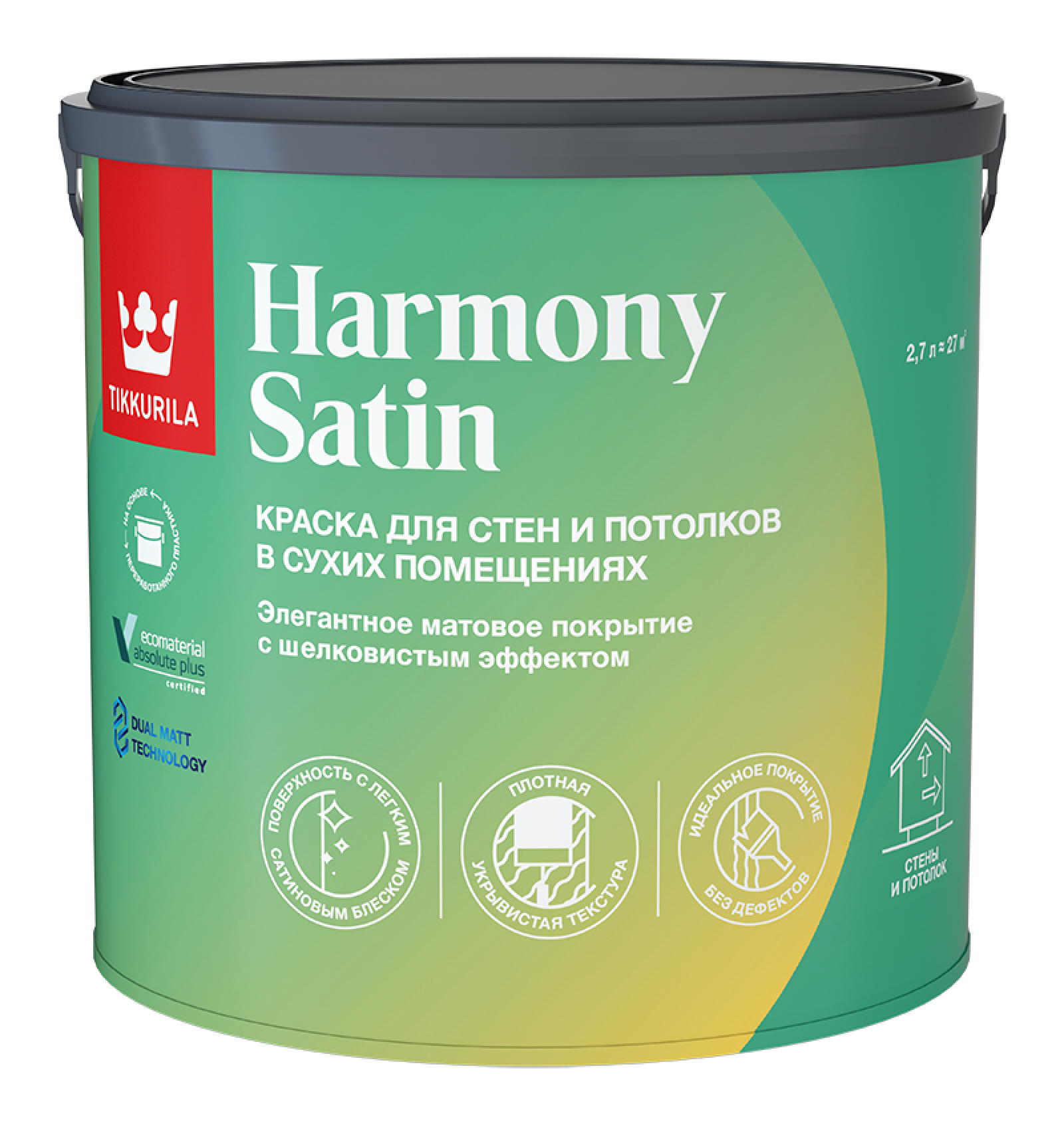 Краска моющаяся Tikkivala / Tikkurila Harmony Satin база A белая 2,7л