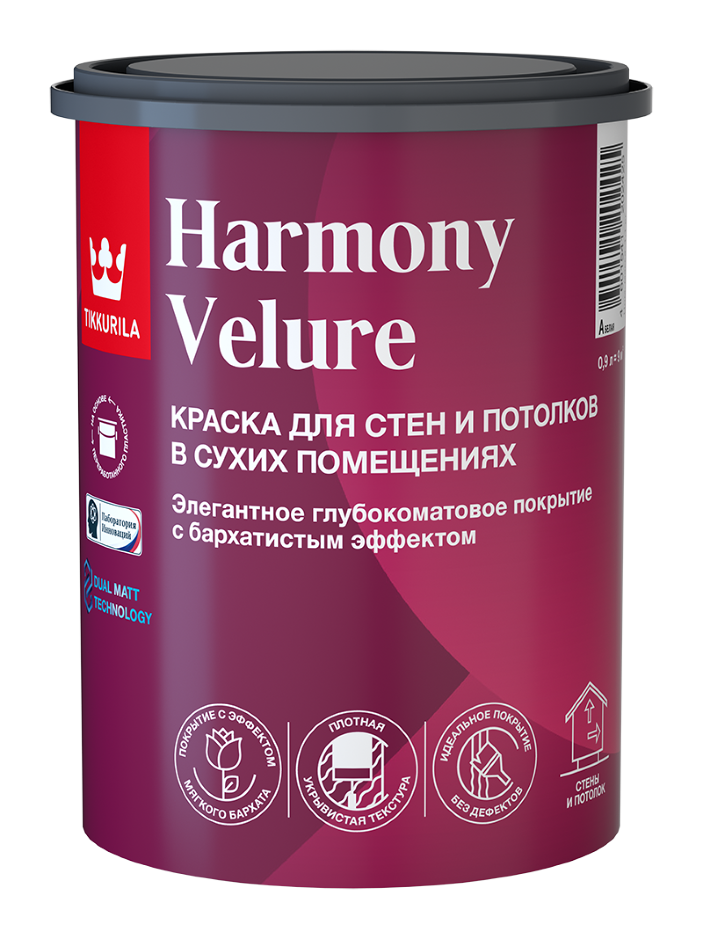 Краска моющаяся Tikkivala / Tikkurila Harmony Velure база С бесцветная 0,9л
