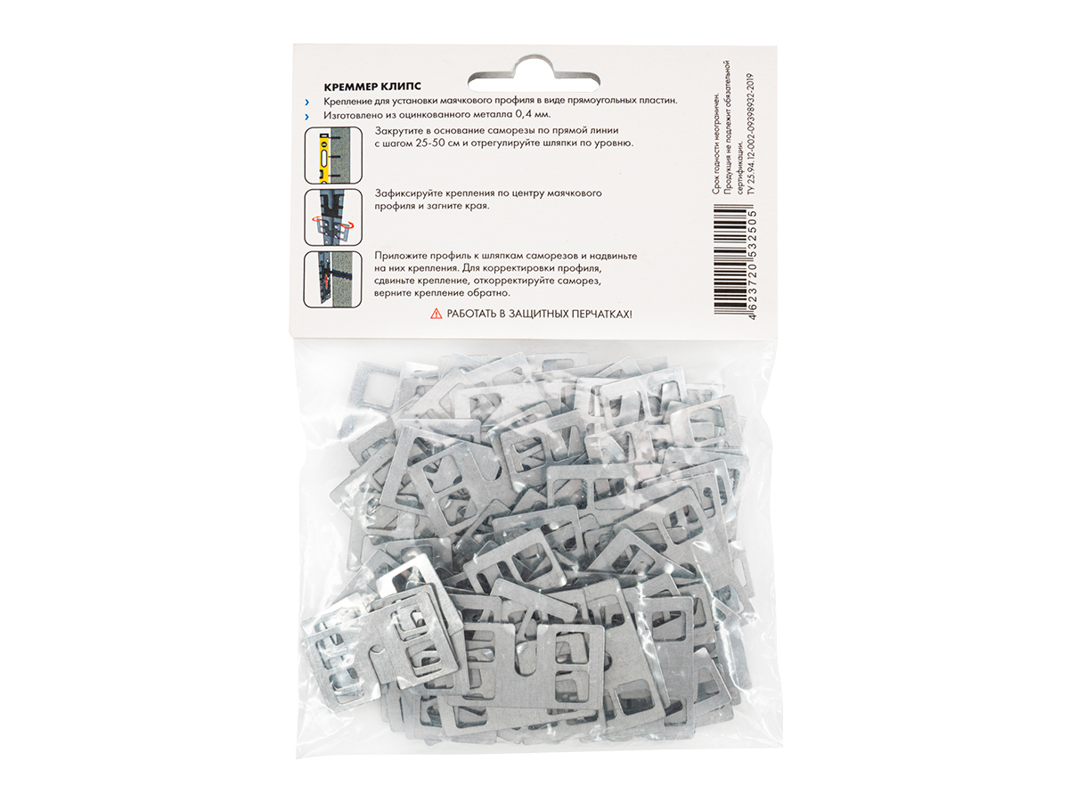 Кнауф Креммер Клипс – универсальное крепёжное приспособление из оцинкованной стали для штукатурных (маячковых) профилей. Используется для фиксации штукатурных профилей к саморезам.