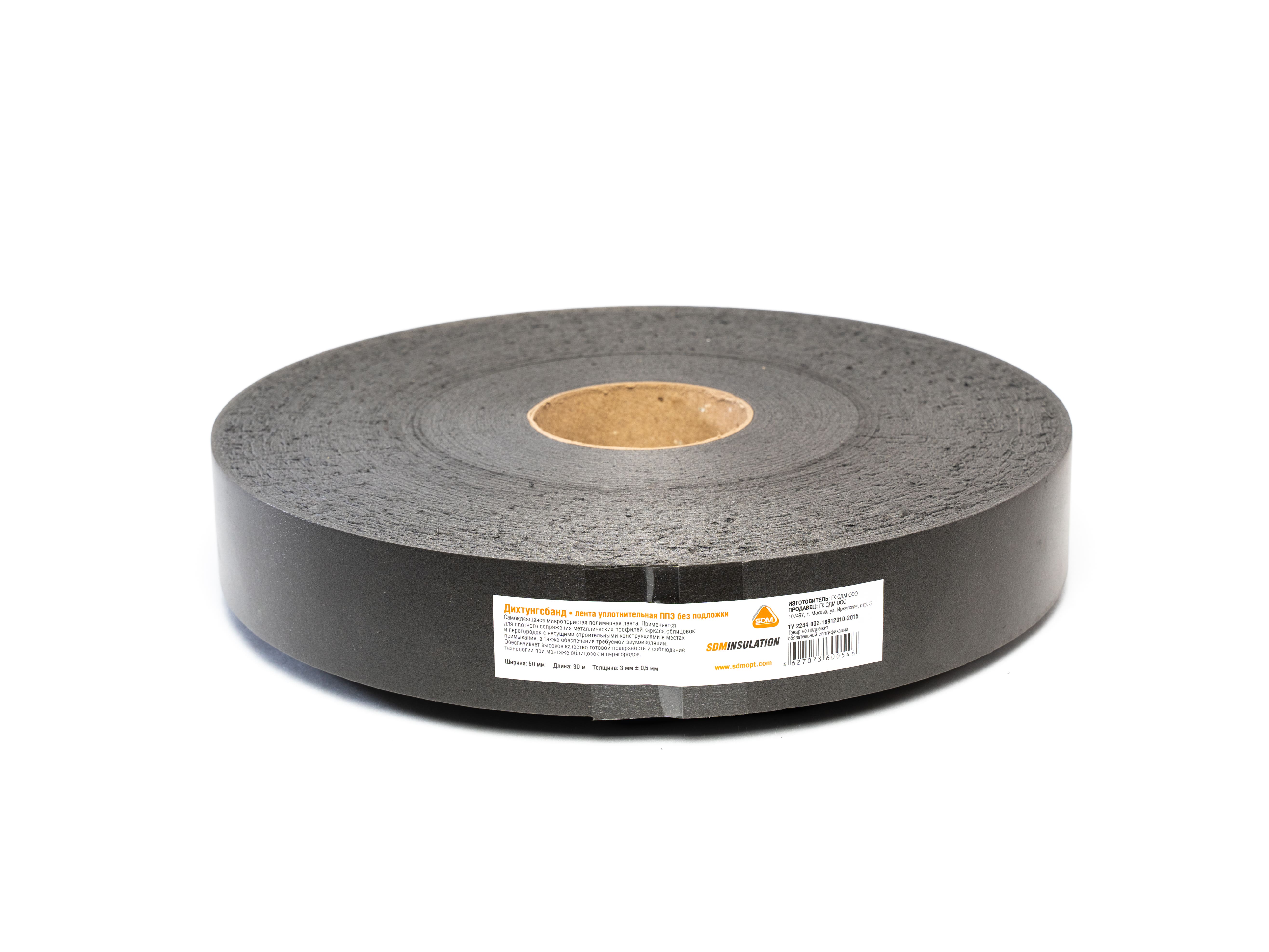 Лента уплотнительная самоклеящаяся Дихтунгсбанд 7см х 30м – лента, изготовленная из вспененного полиуретана с клеевой основой для монтажа, упакована в форме рулона.