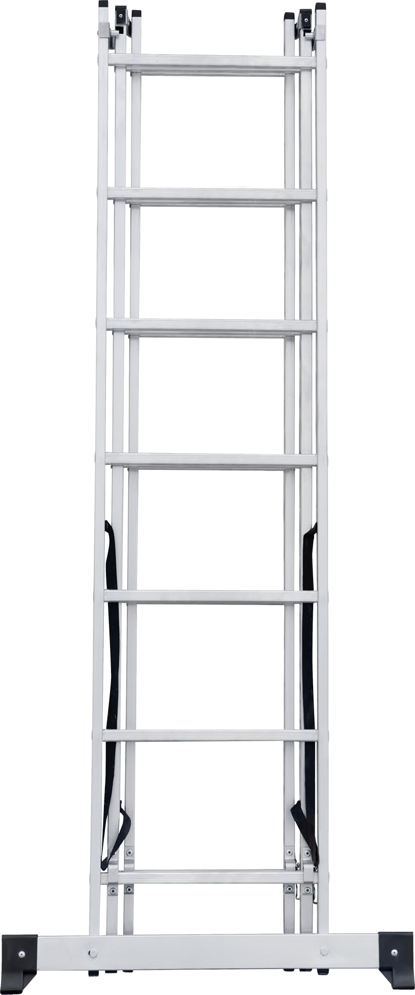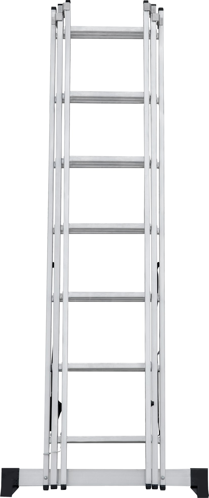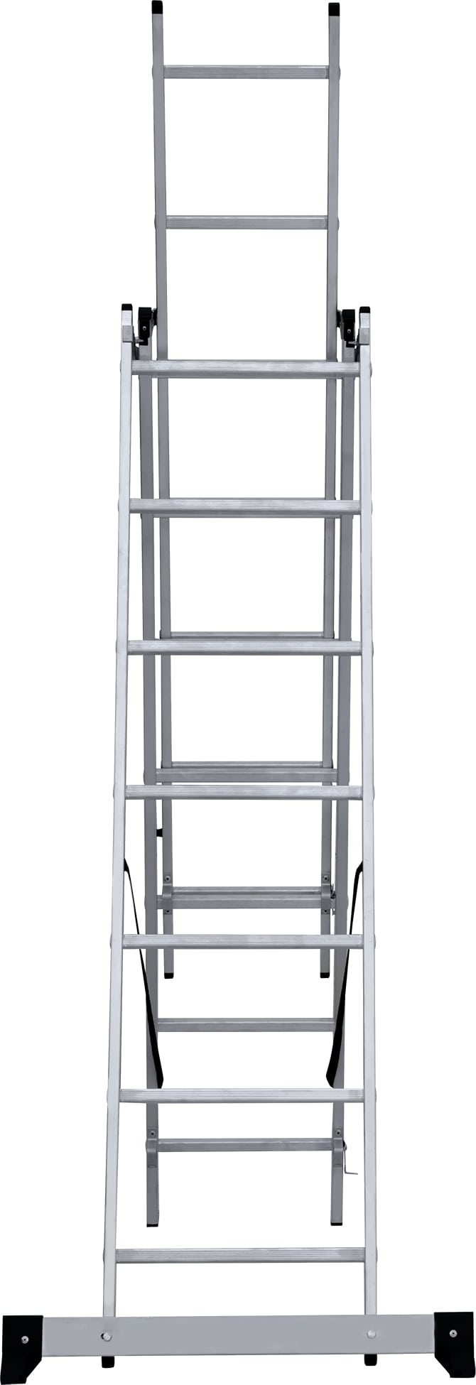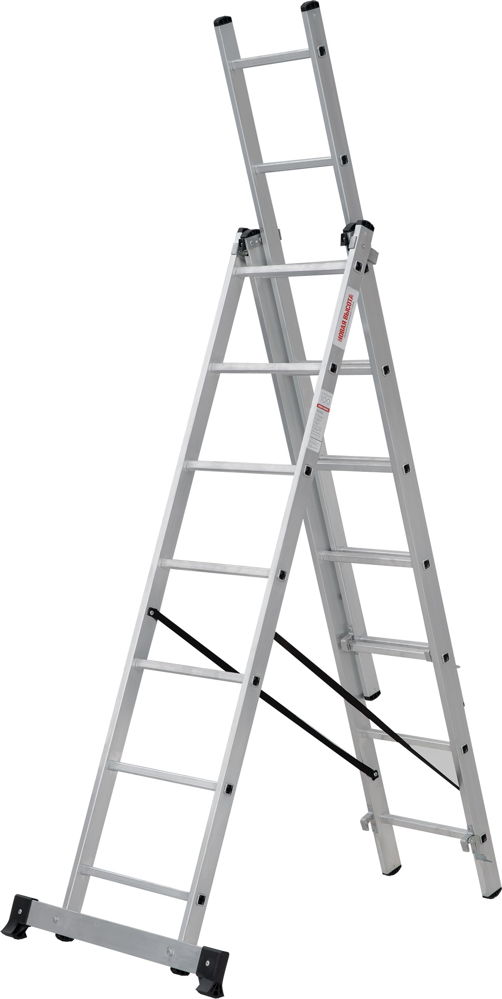 Лестница трехсекционная – это универсальная лестница, которая может использоваться в разных режимах: как приставная, раздвижная, двухсторонняя стремянка, стремянка с выдвижной секцией и лестничный марш.