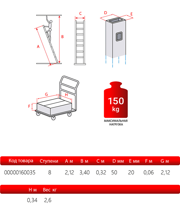 Хорошая Лестница Новая Высота приставная 8 ступеней легкая и недорогая