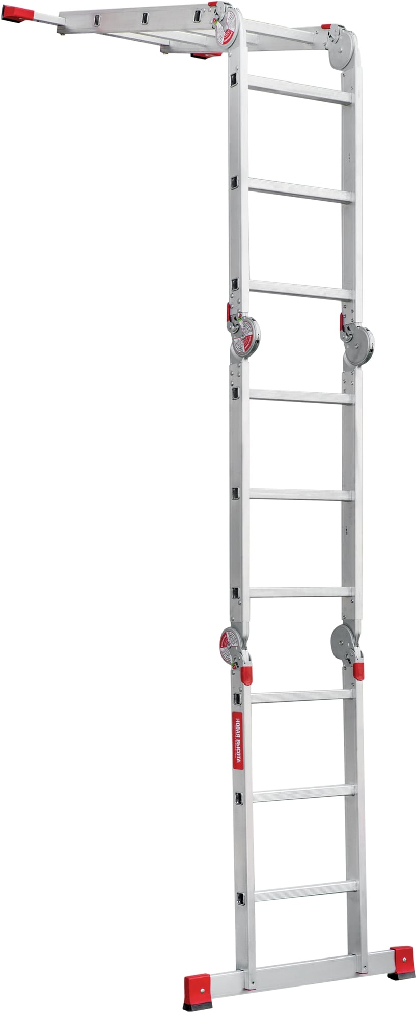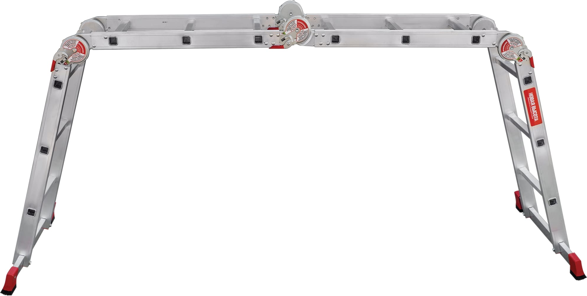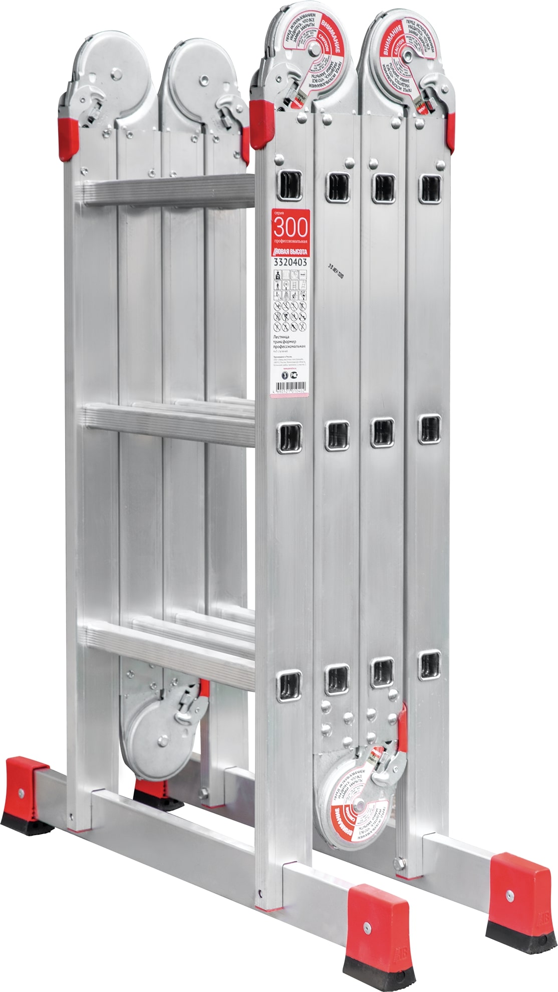 Удобная лестница-трансформер для использования в быту и профессиональных целях. Лестницу можно применять в качестве стремянки, приставной конструкции, помоста и приставной согнутой лестницы. Легко складывается для хранения и транспортировки, занимает мало места в сложенном состоянии.