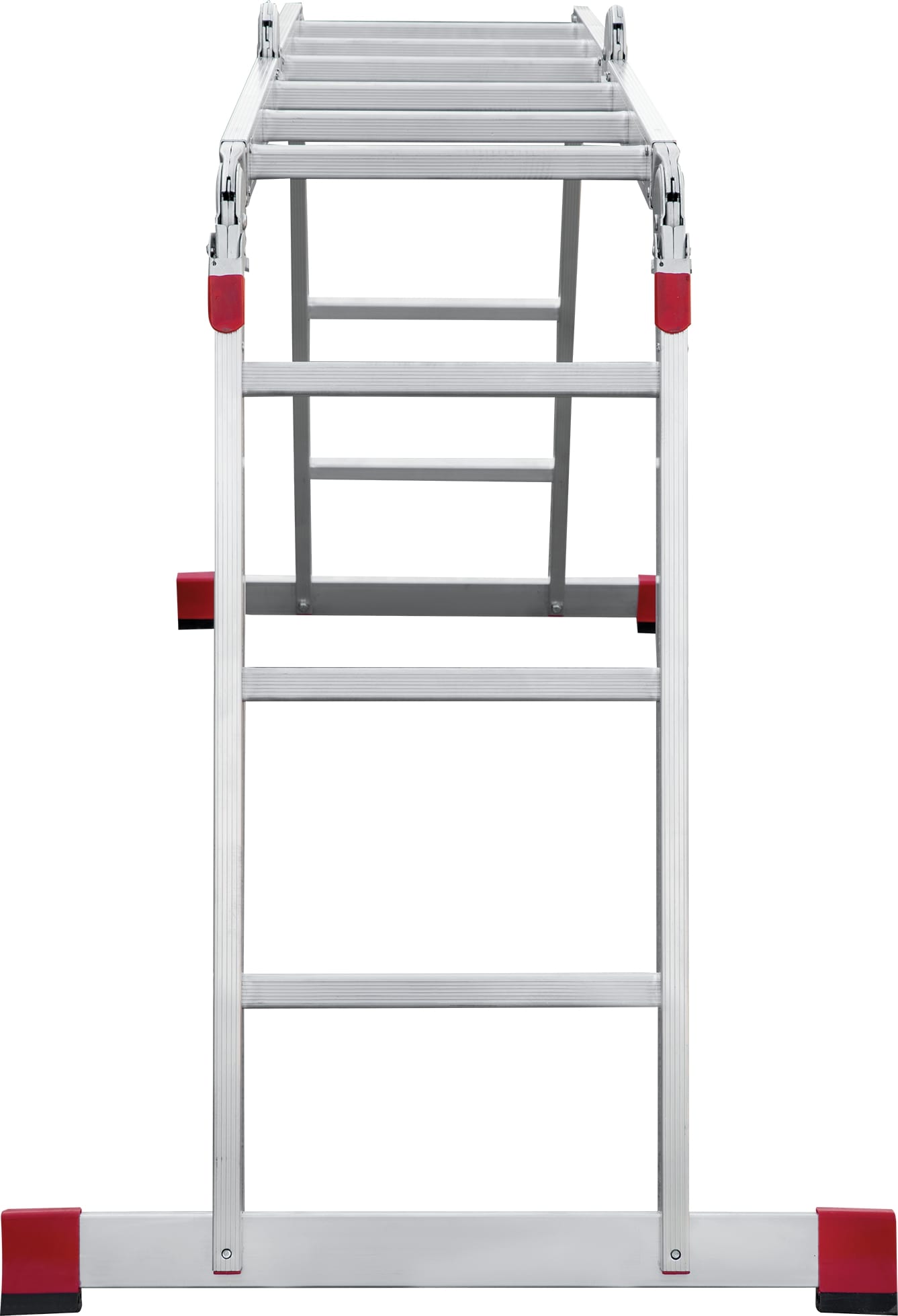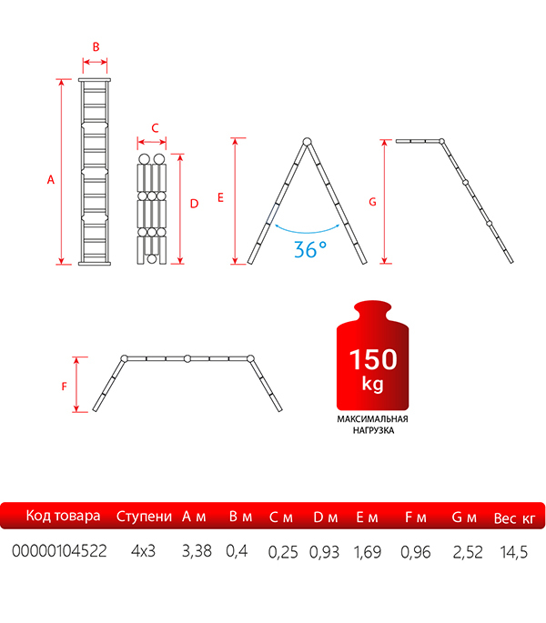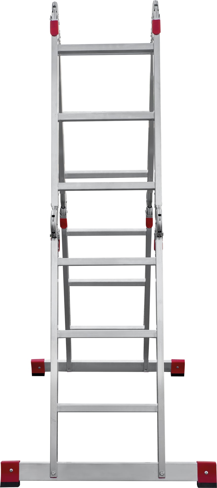 Удобная лестница-трансформер для использования в быту и профессиональных целях. Лестницу можно применять в качестве стремянки, приставной конструкции, помоста и приставной согнутой лестницы. Легко складывается для хранения и транспортировки, занимает мало места в сложенном состоянии.