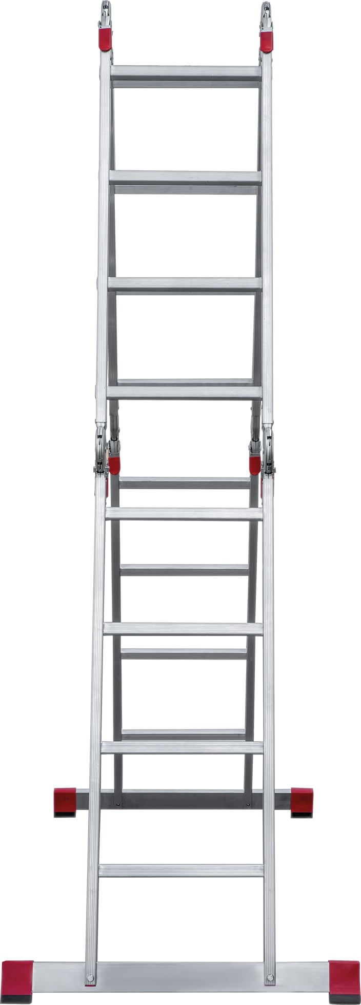 Удобная лестница-трансформер для использования в быту и профессиональных целях. Лестницу можно применять в качестве стремянки, приставной конструкции, помоста и приставной согнутой лестницы. Легко складывается для хранения и транспортировки, занимает мало места в сложенном состоянии.