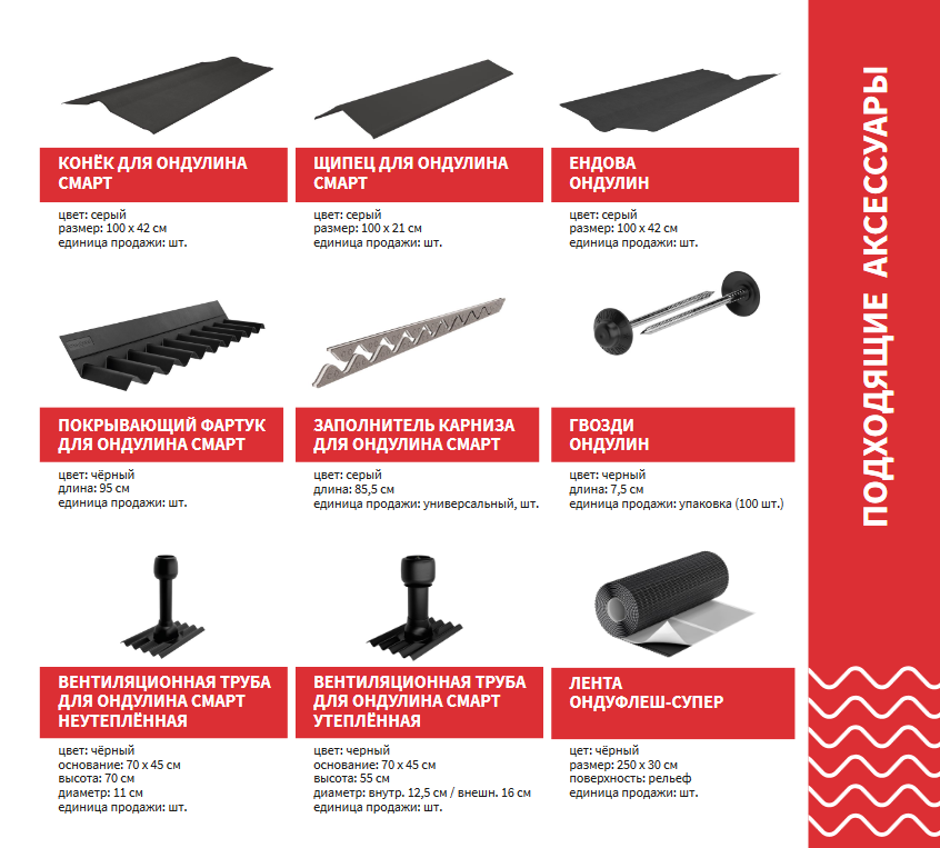 В компании «Материк» Ондулин Смартможно приобрести поштучно со всеми необходимыми комплектующими с доставкой или на условиях самовывоза со складов.