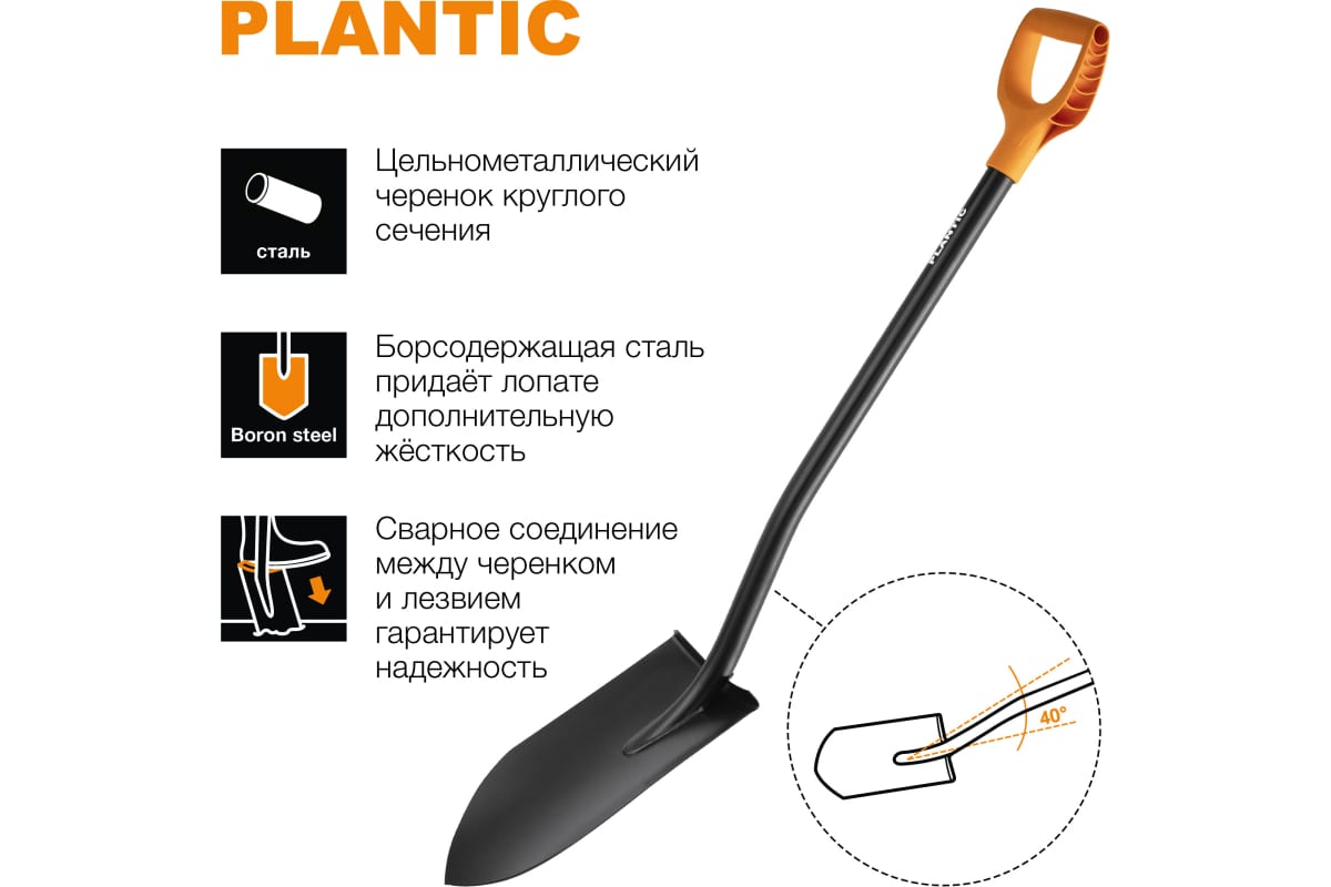 Предназначена для проведения садово-огородных, строительных работ. Удлиненное лезвие позволяет глубоко проникать в почву и перерезать корни. Отлично подходит для выкапывания траншей, комппостных ям, септиков и.т.д. Заточенное лезвие позволяет легко перекапывать перерезанные корни деревьев. Черенок изготовлен из стали и имеет эргономичную рукоятку в форме буквы "D" , которая обеспечивает комфортный захват. Сварное соединение между лезвиями и черенком обеспечивает надежность. Использование борсодержащей стали придает лопате дополнительную жесткость и обеспечивает легкое проникновение в почву.