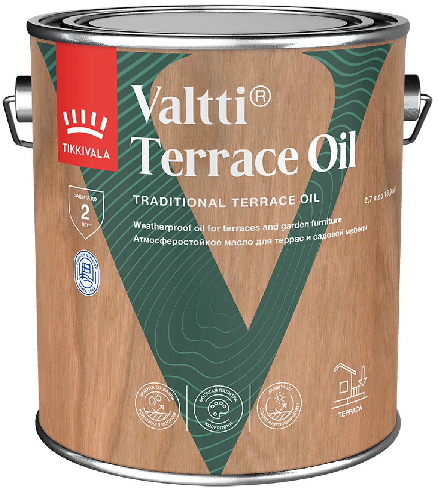 Цвет: бесцветный, колеруется по каталогу Tikkurila «Valtti». Во избежание различий в оттенке используйте масло одной партии. Окончательный цвет покрытия зависит от породы и первоначального цвета древесины, а также от количества слоев.