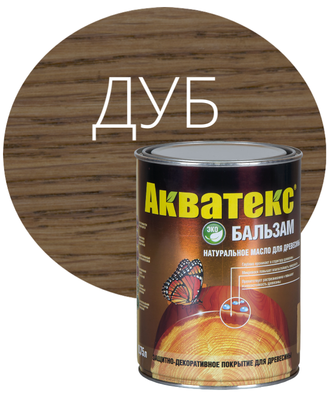 Натуральное масло для древесины Акватекс Бальзам предназначено для декоративной обработки и защиты древесины от атмосферных воздействий и плесени, деревоокрашивающих и дереворазрушающих грибов.