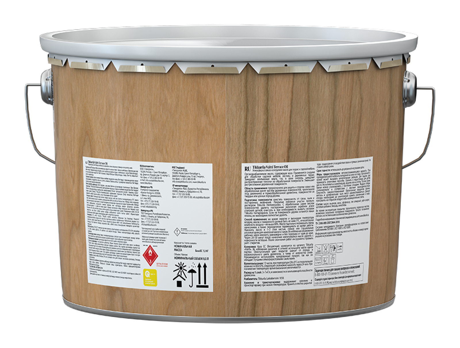Цвет: бесцветный, колеруется по каталогу Tikkurila «Valtti». Во избежание различий в оттенке используйте масло одной партии. Окончательный цвет покрытия зависит от породы и первоначального цвета древесины, а также от количества слоев.