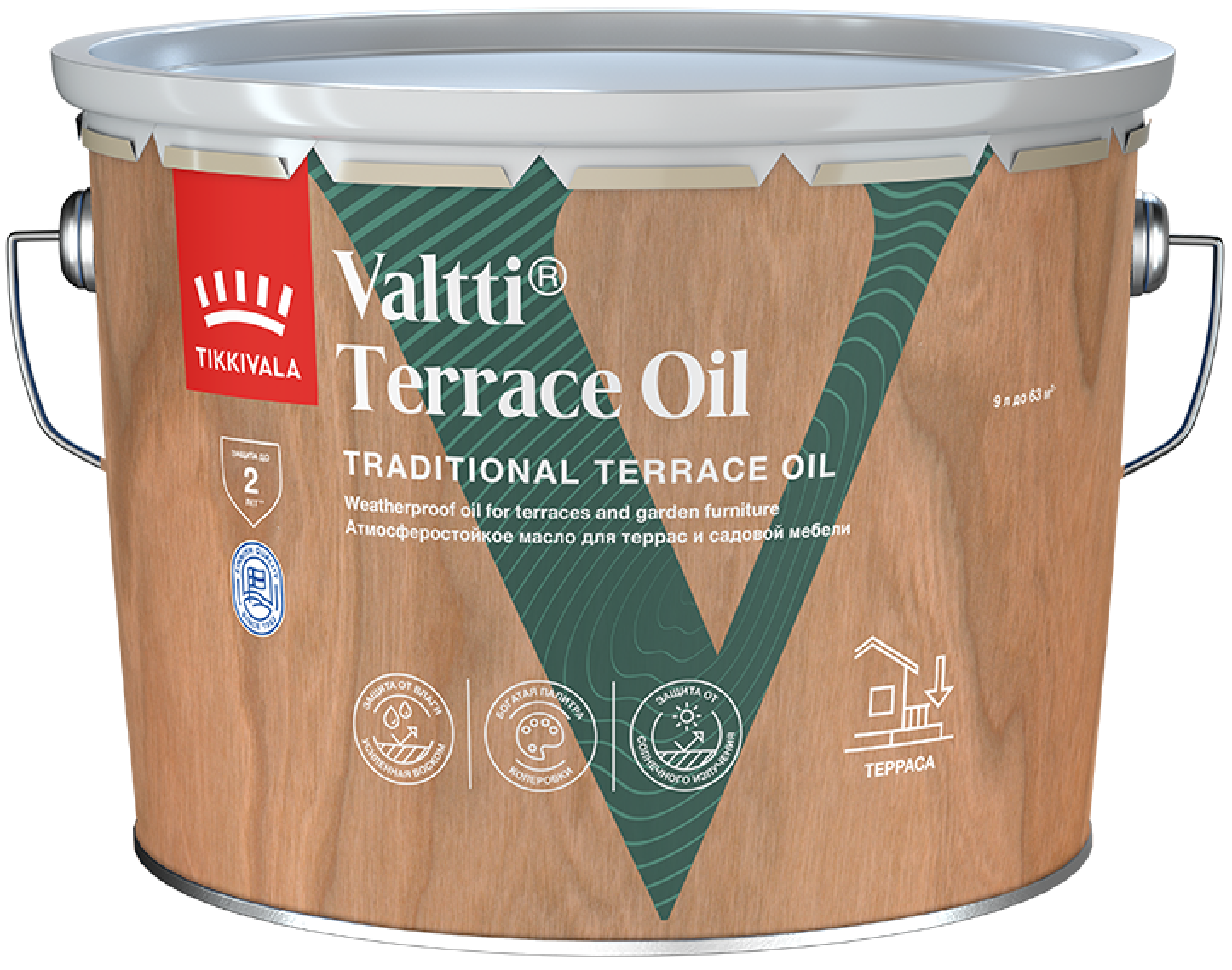 Масло для террас Tikkivala / Tikkurila Valtti Terrace Oil база EC бесцветное 9л