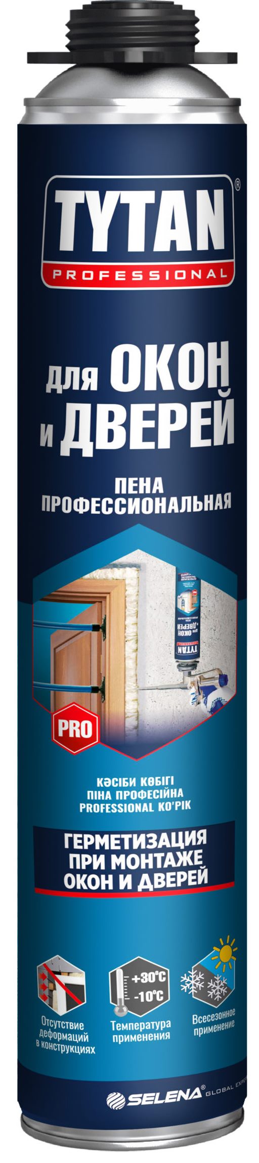 TYTAN PROFESSIONAL для окон и дверей пена профессиональная - однокомпонентная полиуретановая пена, застывающая под воздействием влаги содержащейся в воздухе. Пена произведена в соответствии со стандартом ISO 9001:2008.