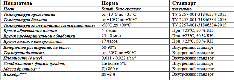 - Пена не имеет адгезии к полиэтилену, полипропилену, полиамиду, силикону и тефлону.
