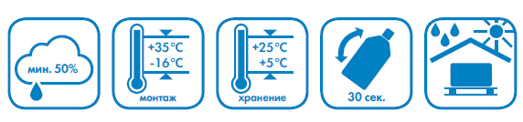 Для того, чтобы получить максимальный выход и оптимальные физико-механические показатели пены, работы рекомендуется проводить при температурных режимах от 5 oС до 35 oС и относительной влажности воздуха не меньше 50%. В начале использования, баллон необходимо выдержать в помещении при температуре от +18 oС до +20 oС не менее 10 часов. Основание очистить от пыли, при необходимости обезжирить. Рабочую поверхность перед применением пены увлажнить при помощи пульверизатора, при температуре выше нуля градусов..