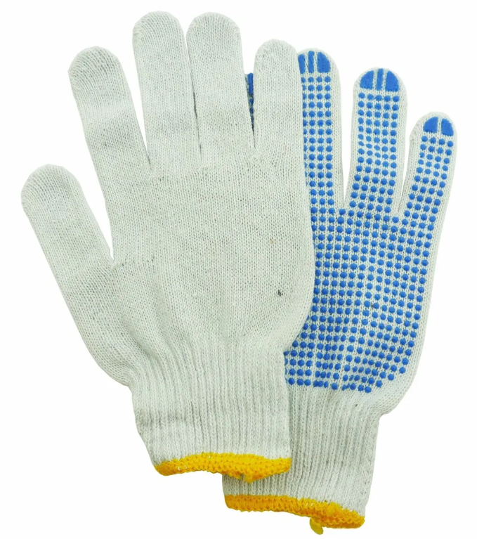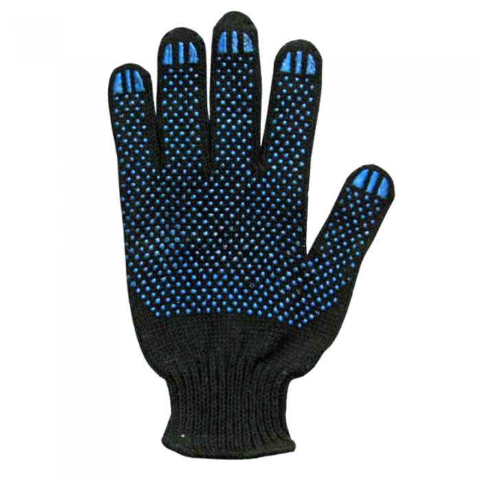 Перчатки х/б с ПВХ черные - перчатки хлопчатобумажные с точечным ПВХ напылением. Предназначены для защиты рук от механических воздействий и истирания при строительных, погрузочно-разгрузочных и сельскохозяйственных работах.