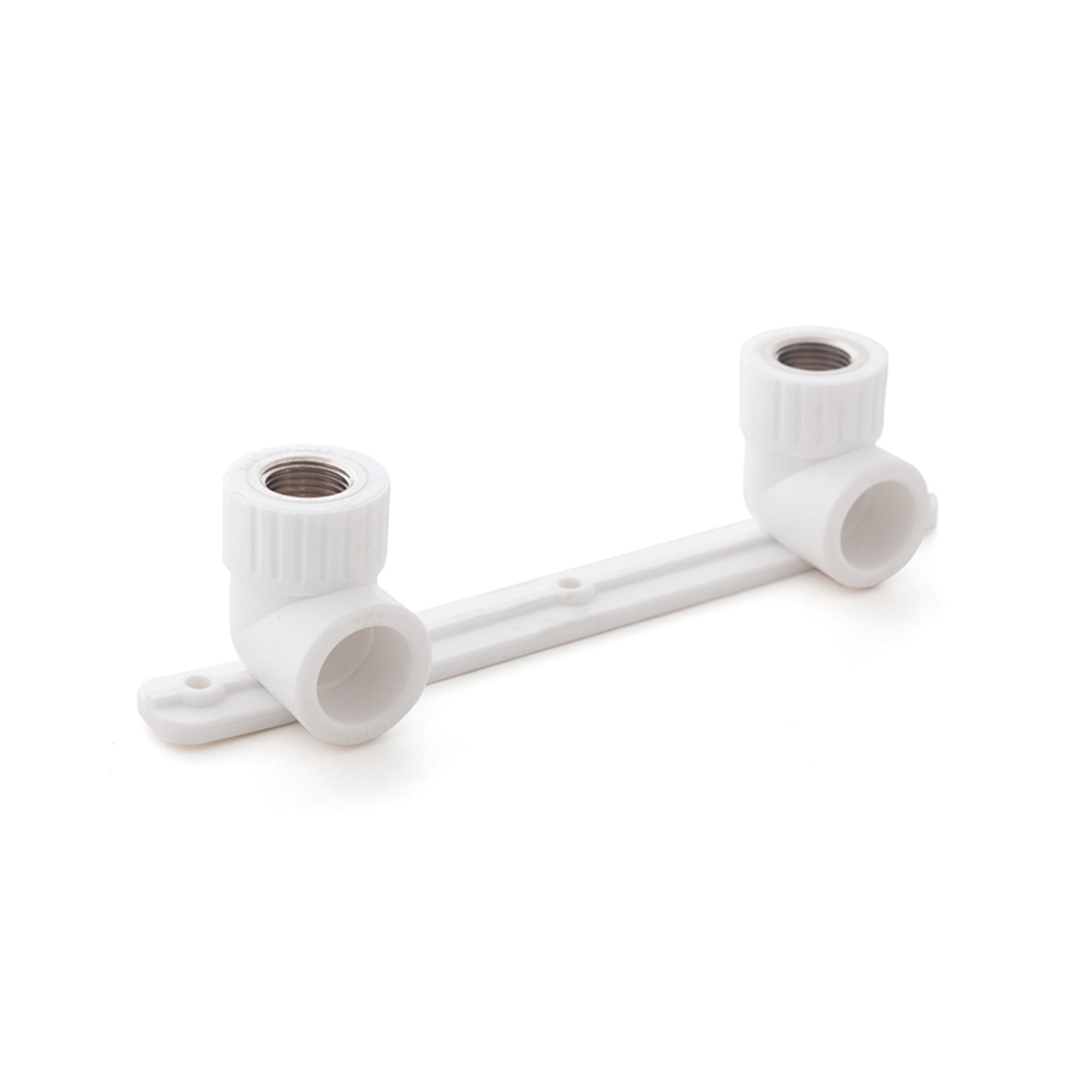 Монтажная планка с угловыми полипропиленовыми фитингами (водорозетками), предназначенными для подключения сантехнического смесителя со стандартным межосевым расстоянием (150 мм) к водопроводу из полипропиленовых труб.