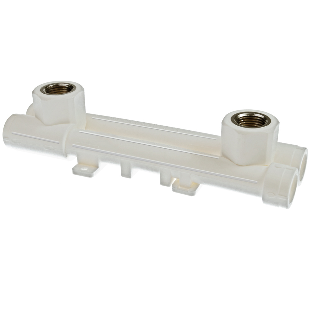 Предназначена для подключения смесителей со стандартным межосевым расстоянием 150 мм к полипропиленовым трубам диаметром 25 мм.