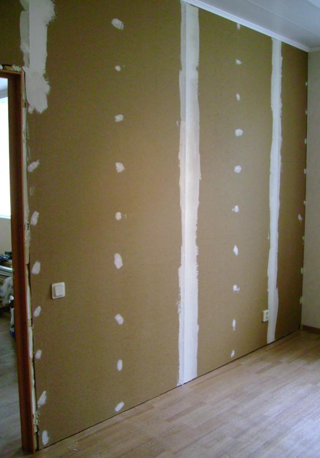 Листы монтируются гладкой стороной наружу, шершавой стороной к стене.