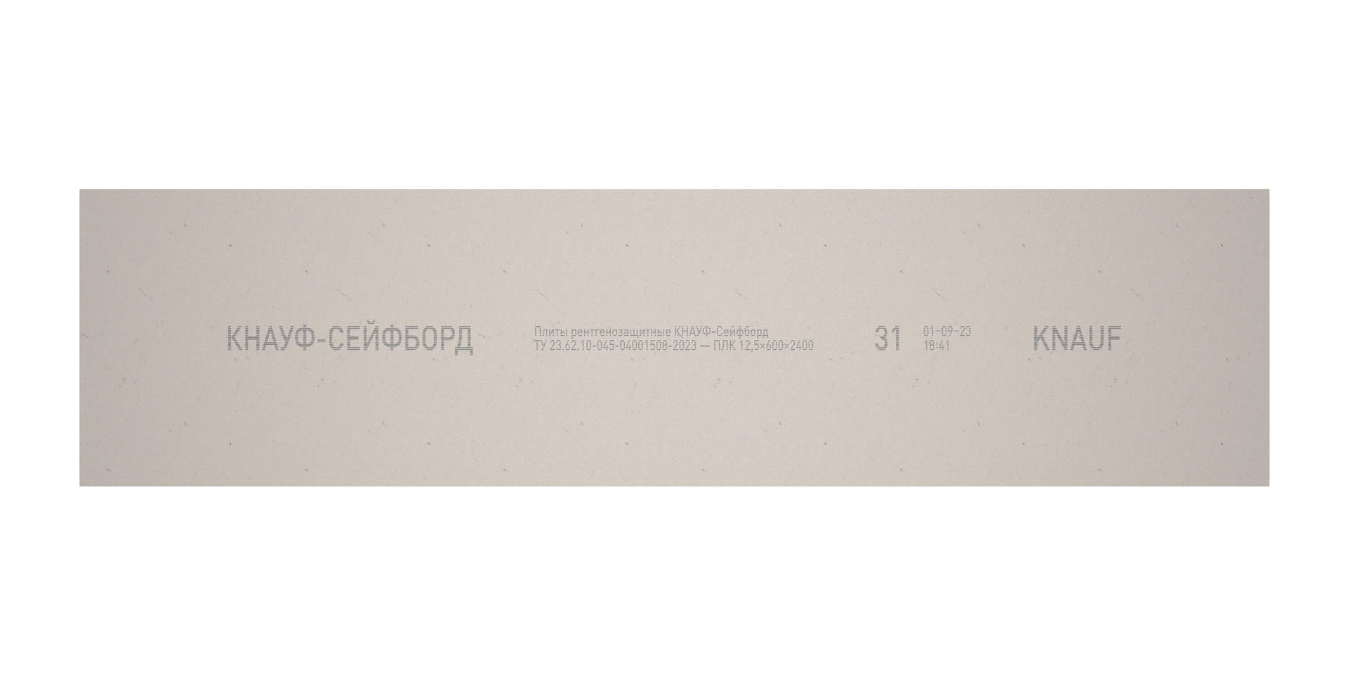 Гипсокартон КНАУФ Сейфборд 12,5х600х2400мм – рентгенозащитная плита (листовое изделие), состоящая из специального сердечника на основе гипса и сульфата бария, все плоскости которого (кроме торцевых кромок) облицованы картоном.