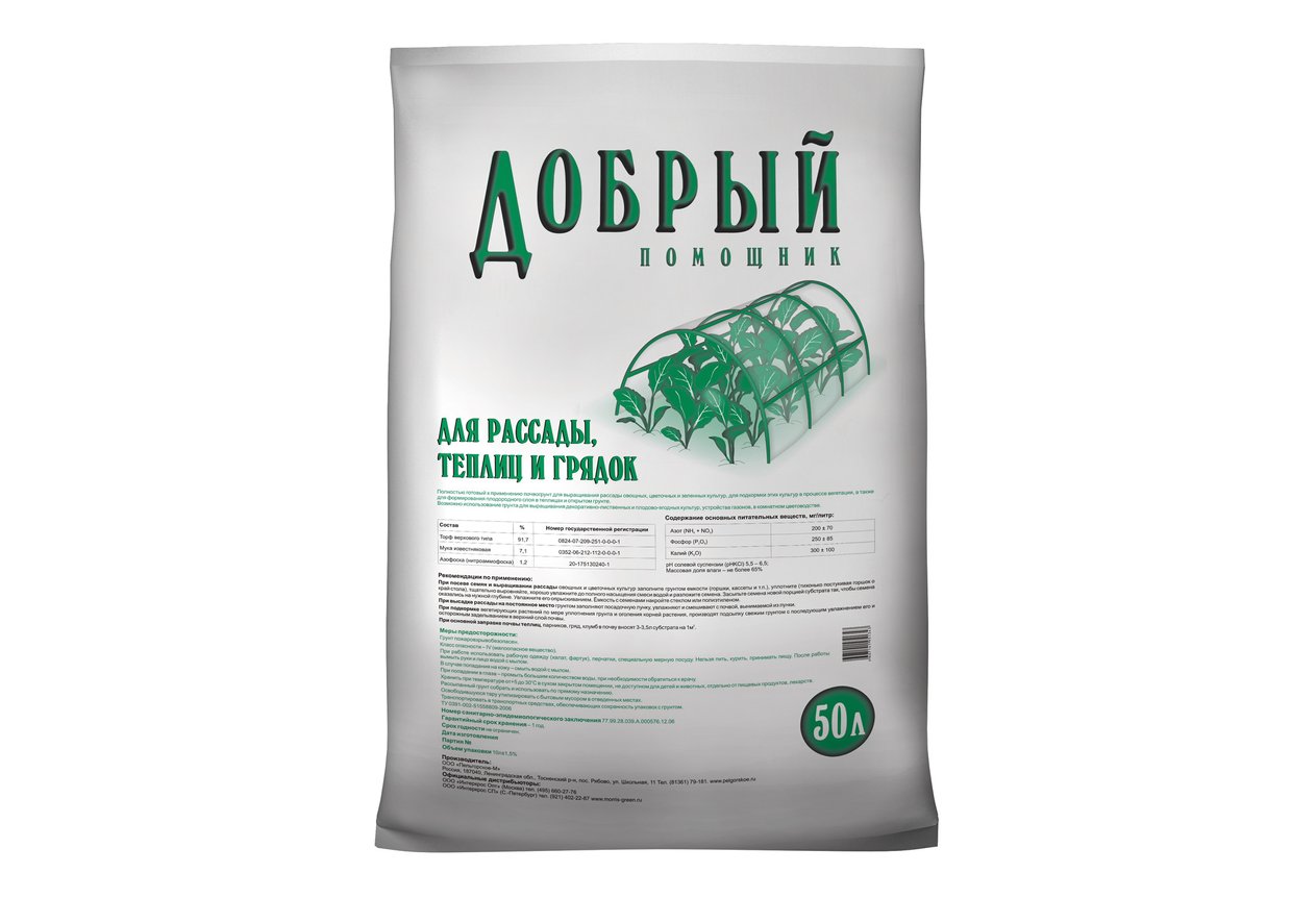 Почвогрунт для рассады, теплиц и грядок Добрый Помощник 50 л