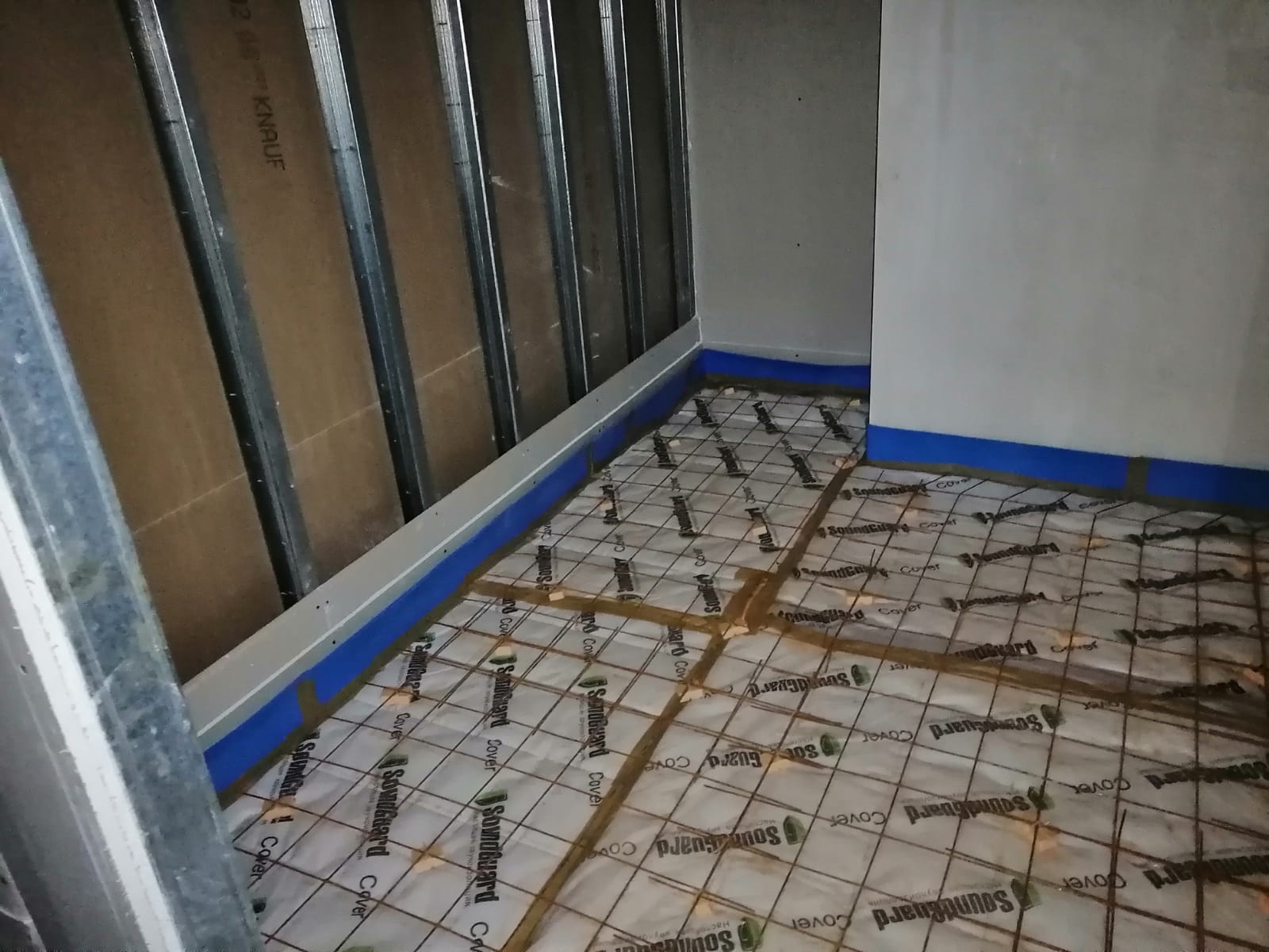 Рулоны раскатывают горизонтально рулон к рулону стык в стык, с заведением на стену на высоту будущей стяжки, места стыка проклеиваются «армированным скотчем».